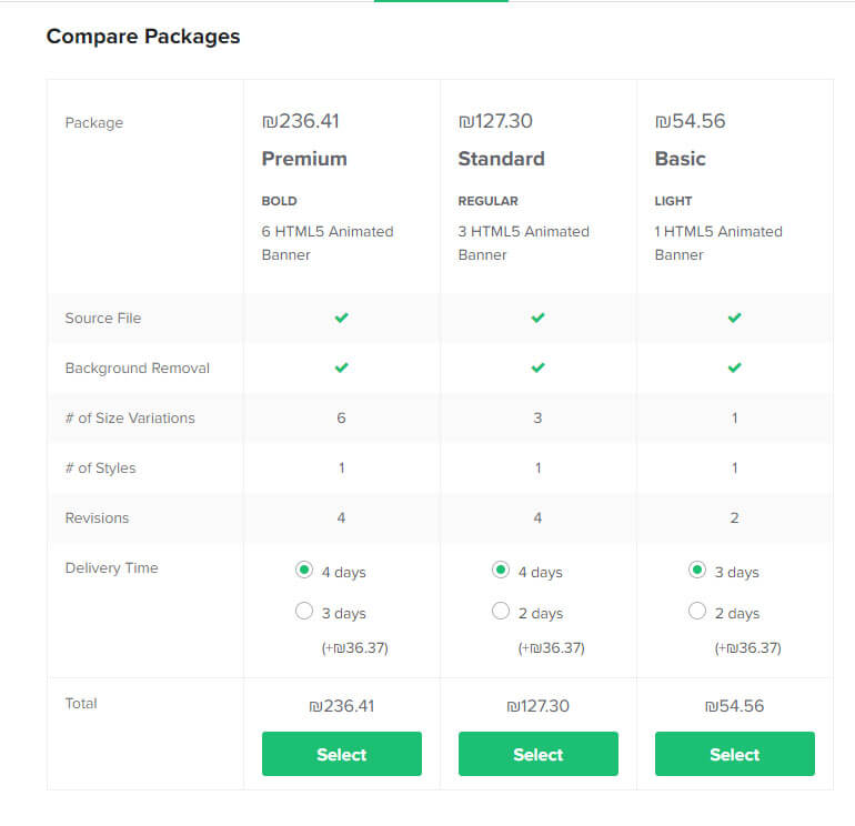ברוב ה'גיגים' תראו 3 רמות של מחיר ותוכלו לבחור לפי הצורך שלכם.
